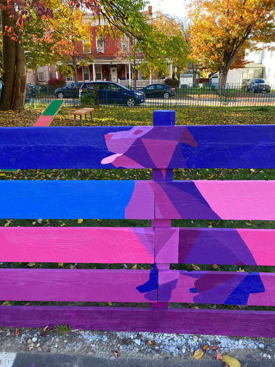 This project was very personal to me and has been a part of my healing. Originally my god father built the dog park. During the final stages of production he unexpectedly passed away from unrelated health complications leaving us completely stunned and deeply saddened. Instead of just painting the fence white, Troy Academy Lofts decided to let me bring the park to life. Amongst the dogs featured on the fencing are my first dog Yeller (Golden Chow mix), my family's dog Jake (Maltese Poodle), and my uncle’s first dog Peppy (Beagle). A paw print with his initials rests on the front door of the park. My uncle loved animals and had an extreme passion for building outdoor spaces that brought people together. I can’t put into words how grateful I am to Troy Academy Lofts for the opportunity to finish what he started.